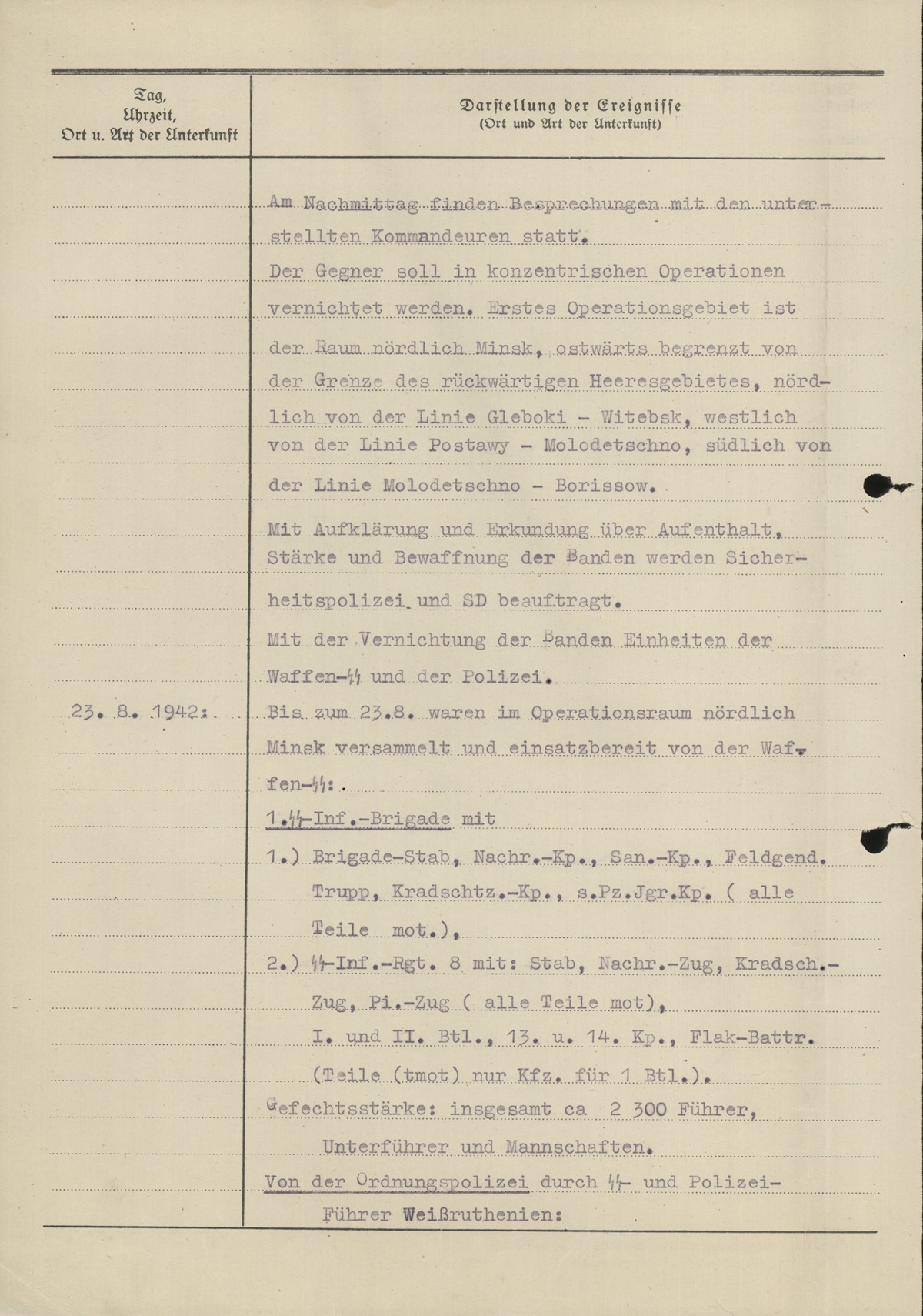 By 23 August, the following forces of the Waffen-SS had assembled and were operational in the area north of Minsk: